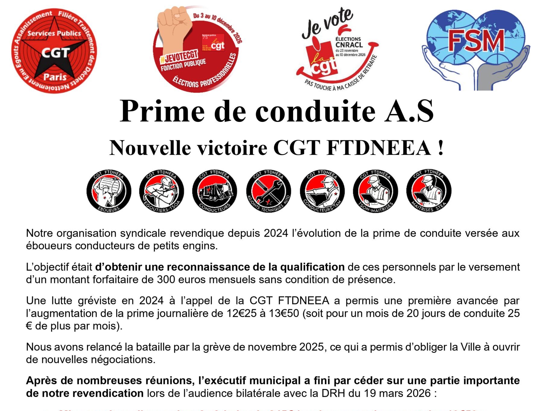 Prime de conduite A.S : Nouvelle victoire CGT FTDNEEA !