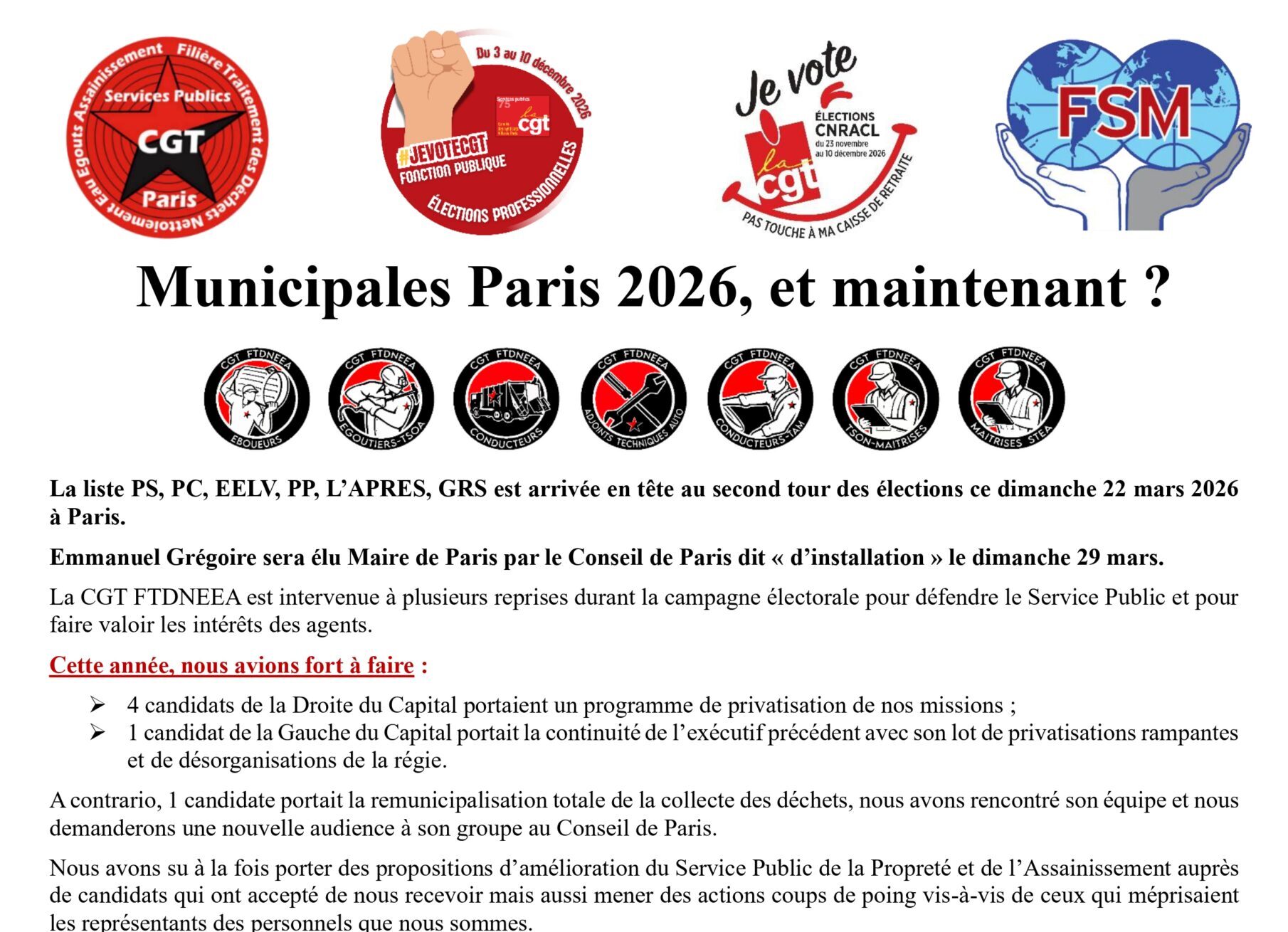 Municipales Paris 2026 : la CGT FTDNEEA intervient